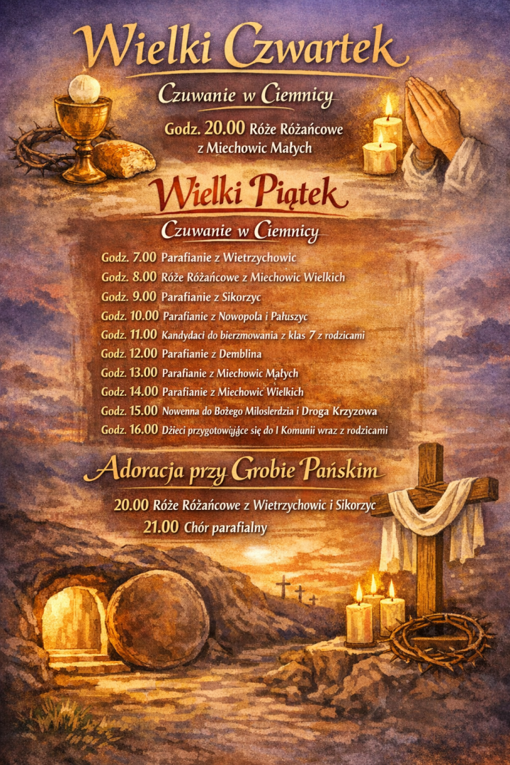 Serdecznie zapraszamy wszystkich Parafian do wspólnej modlitwy i przeżywania tych świętych dni 🙏